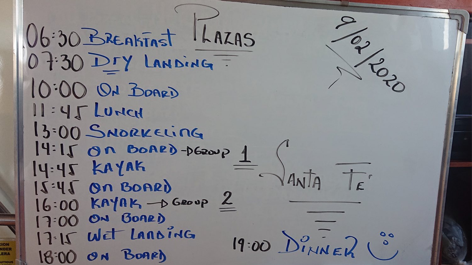 Na de vroege ochtendwandeling in het Research Center had ik wel zin in een koffie, dus ik met pak en zak naar mijn favoriete koffiebar. Is dat spel wel gesloten zeker! Dan maar ticketje voor de ferry gaan kopen, gelukkig mag ik er mijn grote rugzak achterlaten. Bij een routinecheck van mijn rekening zie ik dat die onder nul staat, vergeten aan te spekken met het slechte internet hier. Dan maar effe laptop uithalen in de haven en via tethering een overschrijving doen. Tegen de middag ben ik het doelloos rondtjolen beu (koffiebar is niet opgegaan ondertussen), ik wil naar San Cristóbal.