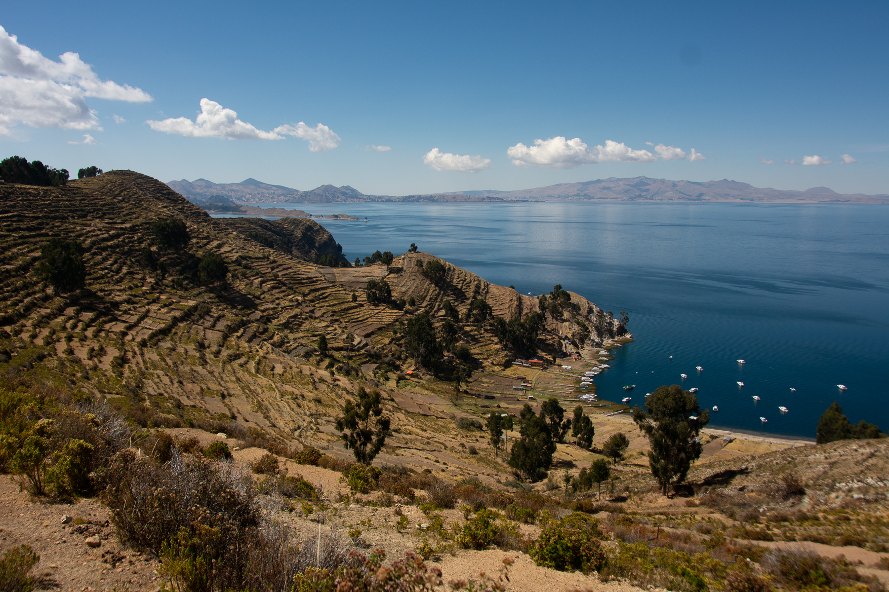 Zee heeft Bolivië niet (meer), maar er is wel voldoende water dicht bij de grens met Peru. Titicaca is de volgende bestemming en meer bepaald Isla del Sol, het eiland waar de eerste Inca vandaan komt (volgens de legenden). De meeste mensen blijven hier 1 nacht, terwijl ze van Bolivië naar Peru gaan, of omgekeerd, maar ik wil even uitrusten, dus ik zal er 3 dagen blijven.