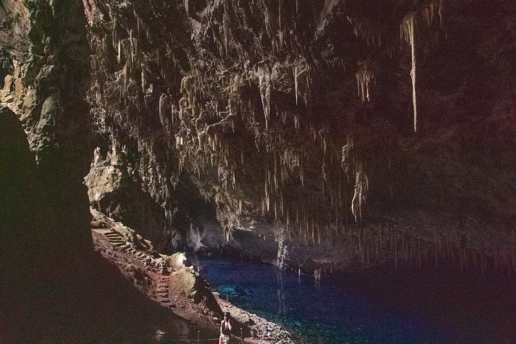De eerste ochtend worden we verwelkomd door enkele araras die hier in de tuin aan het nesten zijn en wat verder zijn enkele toekans aan het genieten van de ochtendzon. Je moet hier duidelijk geen excursie doen om wat dieren te zien. Bij het ontbijt zien we meer araras die aangetrokken worden door de zonnebloempitten die de eigenaar kwistig rondstrooit. Na een lekker ontbijt gaan we naar de Gruta de Lagoa Azul, waar we afdalen in een grote grot, met helm en mondmasker. 300 trappen lager wacht een klein meertje met een mooie blauwe schijn. Het is meer dan 90 meter diep en ze hebben de bodem nog niet gevonden. Hier is nog wat ontdekkingswerk mogelijk. Maar dat is helaas niet voor ons, want we mogen terug naar boven in de drukkende warmte. Bij toeval zien we, wegens parkeerproblemen een restaurantje dat “Com o vovô” noemt, vrij vertaald naar “Bij opa thuis”. En dat is een schot in de roos. Lokale stoofpotjes in buffetstijl, met veel verse groentjes, dat is smullen. Doe daar nog een mangojuice bij en ik wil alweer terugkomen. Maar eerst gaan we nog een wandelingtje maken door de Gruta Cathedral. Ook daar krijgen we een helm op ons hoofd geduwd, maar gelukkig moet het mondmasker hier niet. Een fijne wandeling bij 39 graden later mogen we afdalen in een grottencomplex waar het spontaan 15 graden frisser is. Ik wil nu al niet meer weg, behalve om te gaan eten bij opa dan. Mooie formaties wisselen we elkaar af en vlugger dan gewenst wandelen we terug door de middagzon. Afkoelen doen we bij het zwembad met een pintje, aansterken met een stukje vis in de Steak House (ja, ik begrijp de ironie). De tapir laat zich helaas niet meer zien, hoe lang we ook wachten op de oprit.