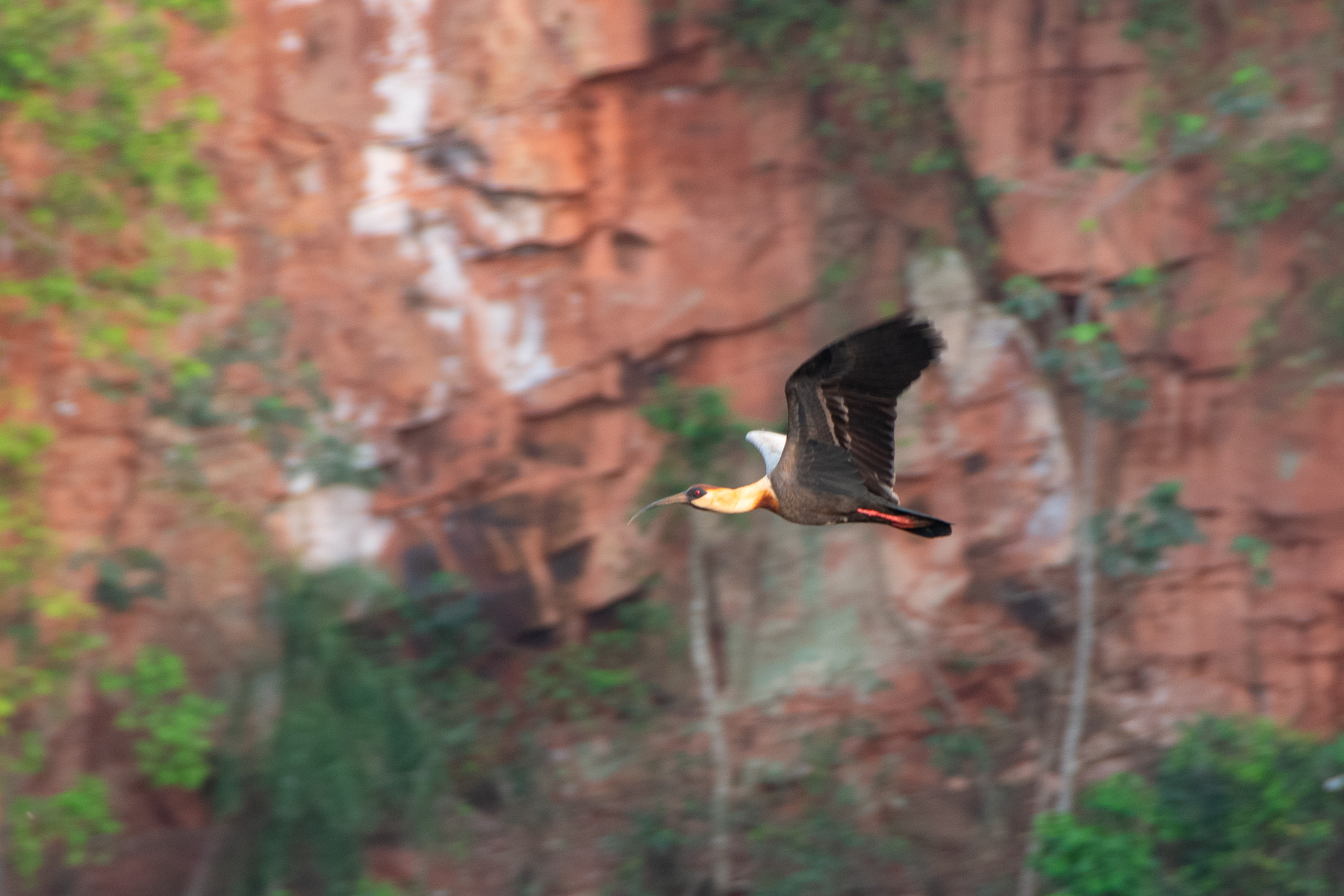 Deze keer staan we vroeg op, want we worden om 7u verwachten aan het zinkgat, en dat is een klein uur rijden. Iets te vroeg voor Didier, die een kan koffie en een stuk droge cake klaargezet heeft voor ons. De vogels maken echter veel goed, en we worden 3 uur getrakteerd op gekrakeel van araras en ibissen, die regelmatig overvliegen en landen op een nabije boom of rots. We worden vergezeld door een bende Scandinavische birders met vette camera’s, wat zorgt voor een salvo van shutters telkens er een vogel een scheet laat. Maar dat kan de pret niet drukken, want ook al hebben we het materiaal niet van de Scandinaven, we gaan er zelf ook in op. Tot ons westvlaams opgepikt wordt door wat andere Vlamingen. Gedaan met grapjes maken, tis tijd om af te koelen in de Rio de Prata. Daar kunnen we nog effe iets meegrissen van het buffet, alvorens met wetsuit en snorkel in de rivier te vallen. Ideaal om wat af te koelen ook. De zichtbaarheid is enorm en de vissen zijn gewoon aan mensen. We drijven mee met de stroming, door het bos, maar dan met onze neus op de takken en bladeren en het leven dat dat creeert in het water. Een paar uur later staan we terug aan het buffet want dobberen is zwaar werk. Dan terug naar Bonito voor een laatste avondmaal vooraleer we ons begeven naar de Pantanal, voor meer natuur.