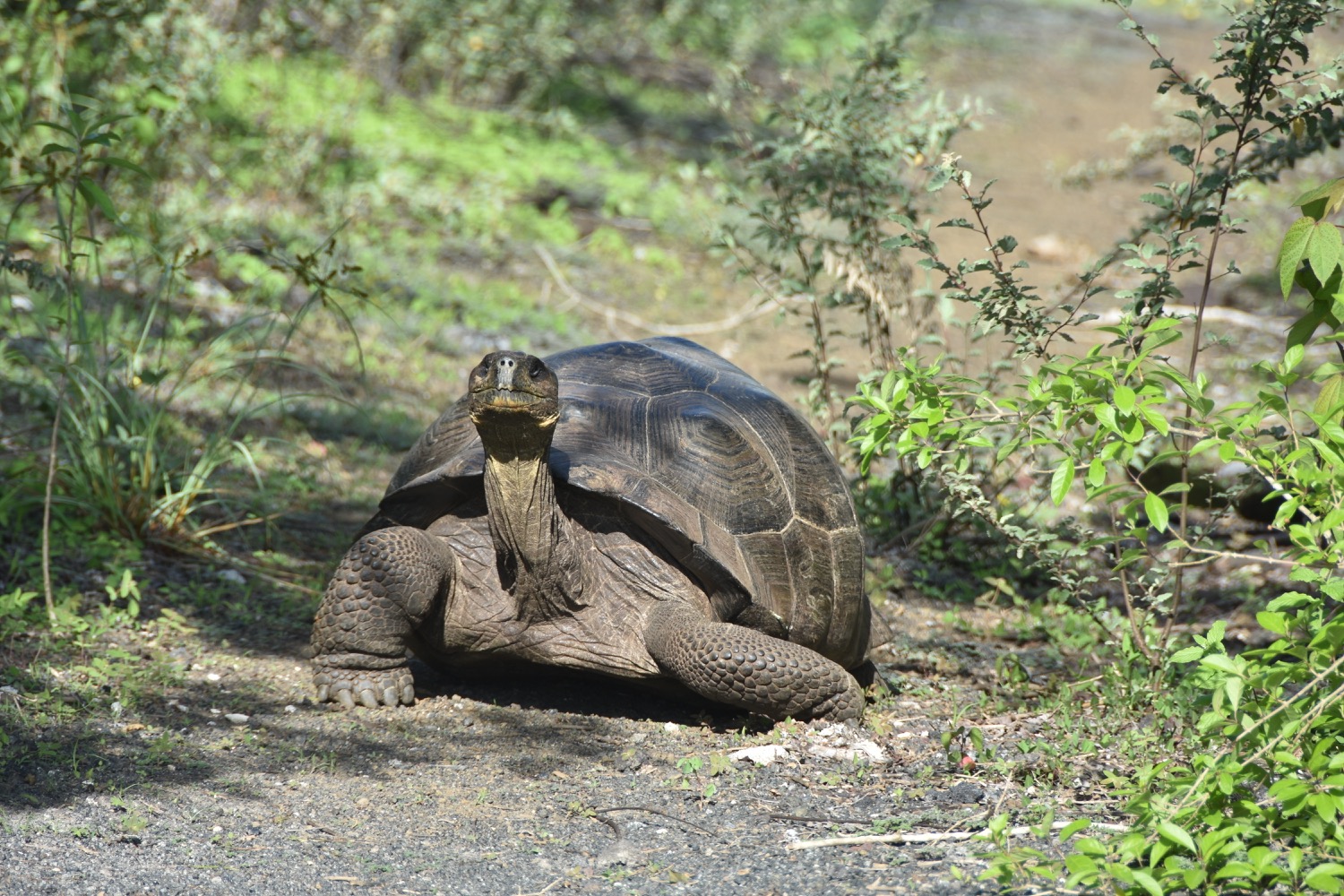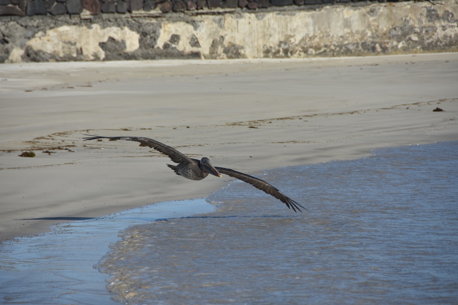 De volgende dag sta ik nog vroeger op, weer geen free snorkel, maar een wandeling naar Mura de las Lagrimas, een aandenken aan de tijd dat Isabela een gevangeniskolonie was. De muur zelf is weinig interessant, maar de weg ernaartoe heeft wat aftakkingen aan poeletjes met vogels, een hoop landschildpadden naast de weg, een brandende zon en een paar mooie uitzichtpunten. Op de terugweg vind ik ook nog wat rotsen aan de zee, met een hoop leguanen en vissende pelikanen, voldoende om een half uurtje foto’s te schieten.
